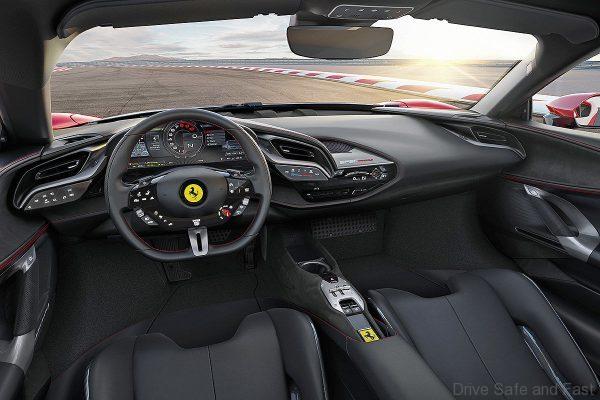 最重要的配置是该品牌史上性能最强的V8双涡轮增压发动机,输出功率表现为780匹马力,剩馀的220匹马力是来自3个电机组成的动力系统,其中2个在前轴上,第3个则在内燃机和8速DCT变速器之间。为了实现混合动力驱动的动力,SF90 Stradale还配置有四轮驱动系统。
