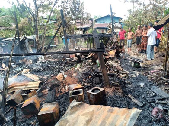 (诗巫29日讯)马来甘榜万隆(Kampung Bandung)年初一凌晨约3时发生火灾, 两座马来木屋被烧毁,10人睡梦中醒来苍黄逃命,回头只见家园已烧成废墟。