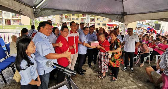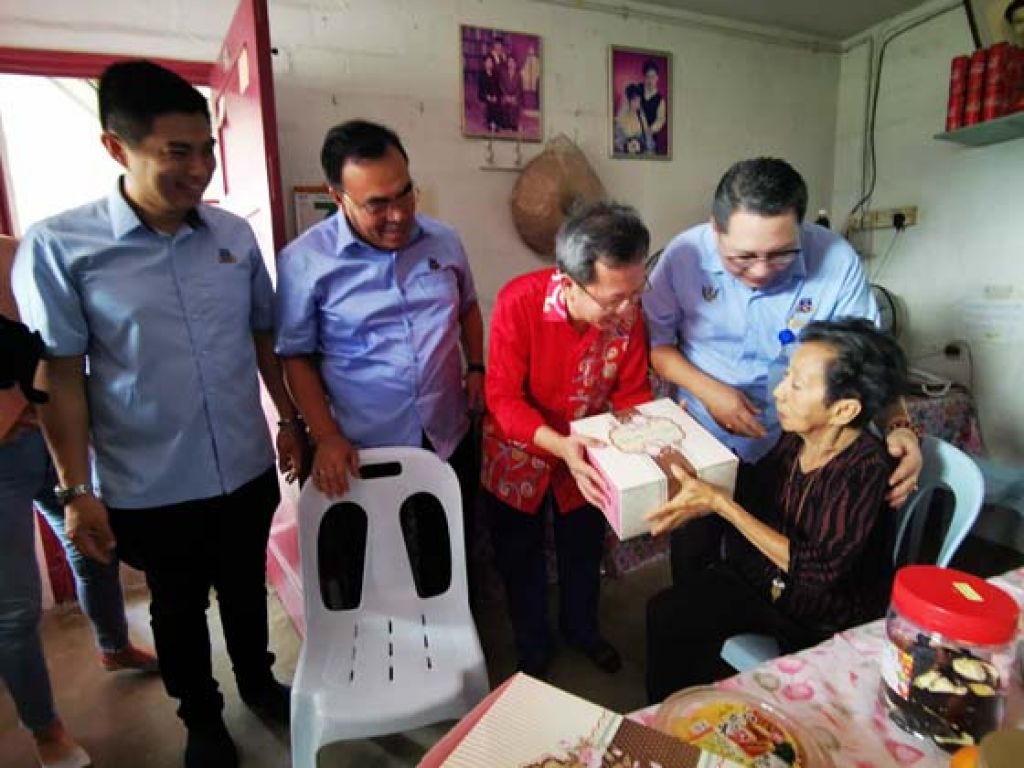 砂地方政府与房屋部长拿督斯里沈桂贤和黄鸿圣亦带着元宵节礼品拜访当地居民,关怀居民生活起居。黄鸿圣感谢赞助商,赞助元宵节礼品。