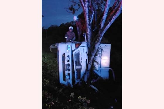 从古晋运载鸡蛋往美里 罗厘撞大树翻覆夺两命 09 01, 2020 登载于 大马首题 罗厘失控翻覆,司机与跟车员当场丧命。 (诗巫9日讯)一辆从古晋运载鸡蛋前往美里的罗厘,在诗巫巴拉当路,疑是驾驶失控,撞向路边大树,司机与跟车员当场丧命。 这起夺命车祸是今日凌晨约3时到5时之间,在巴拉当路通往诗巫方向的路段发生。 当地消防与拯救局于凌晨5时48分接到通报,先后与交警、医院医务人员赶抵现场施救。 据悉,罗厘撞上路边的一棵美化树而侧翻,罗厘驾驶员及跟车员都已丧生,卡在损坏不堪的车座内。救援单位出动吊车将罗厘吊起,将2名死者遗体取出,由警方黑车送往停尸房。 罗厘卡在树身,动弹不得。 更多相关: « 美民沿海大道园丘食堂大火 两华裔男子烧成焦尸 “蓝魔行动” 砂13毒警停职 »