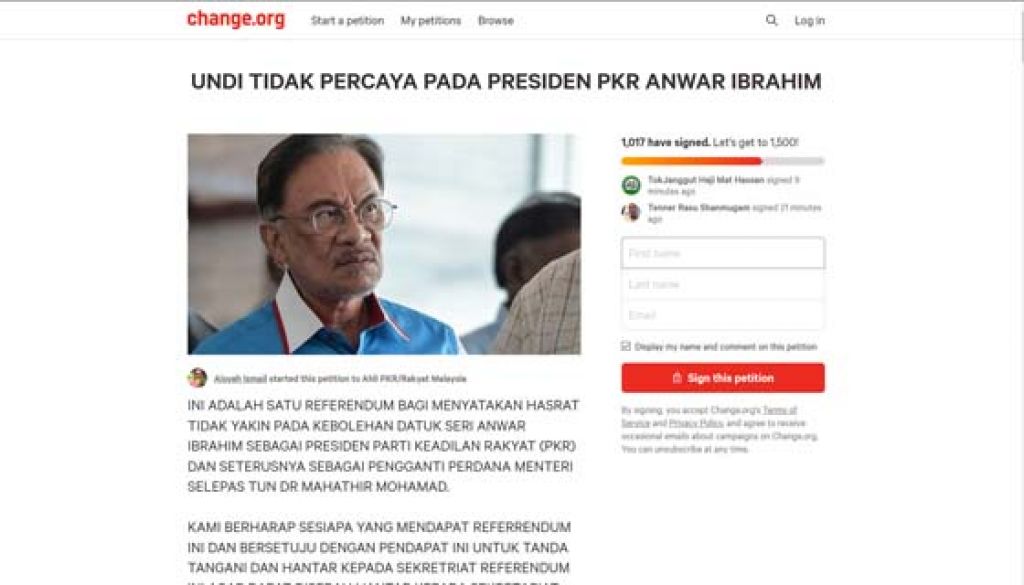 公正党员网络请愿 联署向安华投不信任票