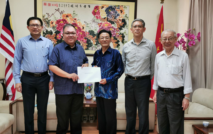 (古晋4日讯)黄文彬集团、砂中友好协会、砂拉越中华总商会及古晋中华总商会今日(周二)移交新冠肺炎抗疫捐款予中国驻古晋总领事馆,与中国共同抗疫。