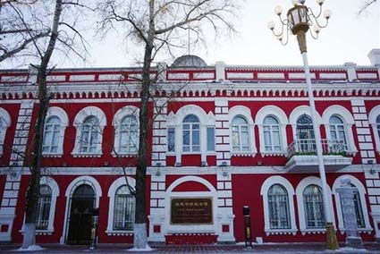 在黑河市距离江边大约百米的地方,有一座红白间色的俄式二层小楼──“黑河市旅俄华侨纪念馆” 。