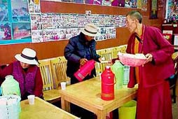 嘛呢石能为苍生祈福,而新寨村也能认识其它有福的人,像是开设免费茶馆的僧人巴登生根。来自四川的巴登生根,知道此地有许多信徒,为了信仰长徒跋涉而来,因此愿意免费招待他们酥油茶和点心;他同时也常发起募捐旧衣,送给牧区有需要的贫困人们,展现不凡的菩萨心。