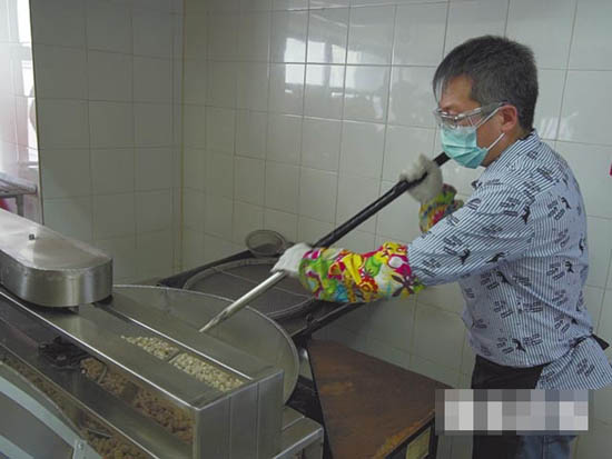 不过工场环境比预期恶劣,蒸炉、焗炉、油镬等器材,令工场温度酷热爆标。由于生产时涉及大量面粉,不可以开风扇以免被风吹散。另外炸过或烘焗过的花生要注意湿度控制,空调一开一关也会令产品回潮,所以亦不可安装空调。年轻人面对每日汗流浃背的试炼,偶尔也会有懒散的时候,吴老先生全都看进眼里。“爸爸要求严格,例如捞粉这步骤只要有丝毫缓慢,令花生上粉没有预期中好,这般好像是很小的事,也会令我捱骂。”