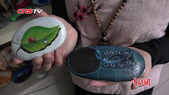 王海燕是青海西宁的一名绘画爱好者,2017年她开始在石头上进行创作,通过精巧的设计和自己的画笔,让普通平常的石头鲜活起来。