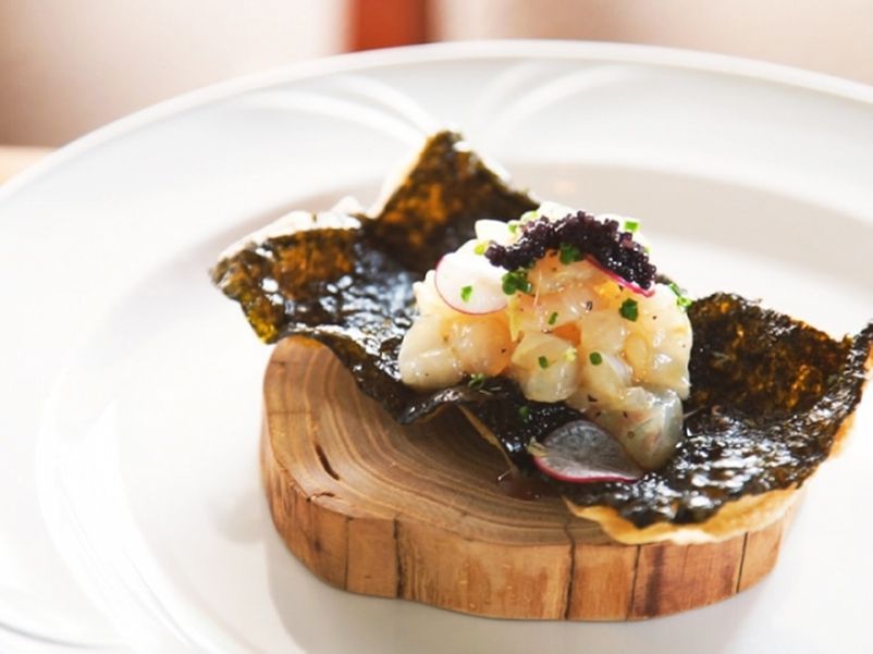 “我喜欢用本地食材,尽可能可以用到本地的都用,因为本地资源越来越少,很难吃得到,然后会配自家种植的香草、蔬菜及食物花。”像西贡小花蟹,拆肉配墨汁面,以意大利式蒜油、辣椒、番荽,煮意粉,惹味又鲜味;找海鱼回来处理好,接着切粒做fish tartare,混合酱料、香草,配一个紫菜做的脆饼,清新鲜味。