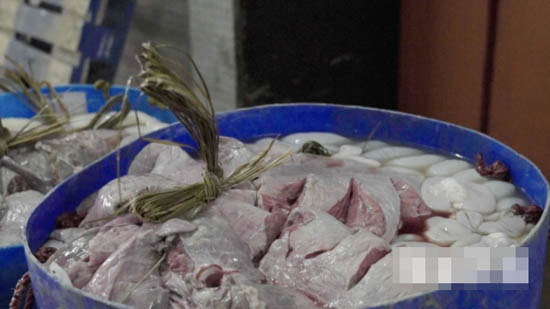 屠房在凌晨开始运作,每日凌晨两时便开始屠牛,宰牛会将内脏分开,经管道将内脏送入阿正工作的地方,这个地方叫杂房,每一份内脏都有号码。“我们要将内脏内外都洗到很干净,但又不能弄污外面。很多人问牛肚为甚么这样白净?是否用了哥士的?其实并不是,我们用一种叫沉灰的东西。洗杂时要特别注意,在牛肚会找到人民币一两毫,钉、玻璃、瓦片等,一定有损伤。你看我双手的刀痕,做得急的时候就会中招。”阿正说。一副牛杂每只赚300元(港币,下同),日卖约10副,每日便赚约3,000多元。清洁后分类好,便要包送货,主要靠阿权负责。