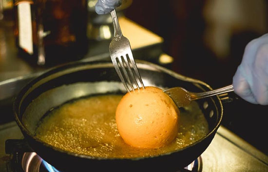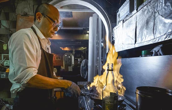 酱汁,是每道美馔佳肴的和弦,没了酱汁,整体味道相形失色单调乏味。Sammy独门的滋味酱汁,用上很多牛骨、牛肉长时间精心熬制。此外,还有多种新鲜食材,包括烟肉、洋葱、白菌、西芹、黑椒碎等,逐一爆香食材后,才有次序地加上配料,叶德盛认为爸爸那一代中国人讲究镬气,所以要求材料一定要够热,最后倒下酱汁,一道蒸气腾腾,色香味俱全的肉扒徐徐端至桌面,客人眼前。