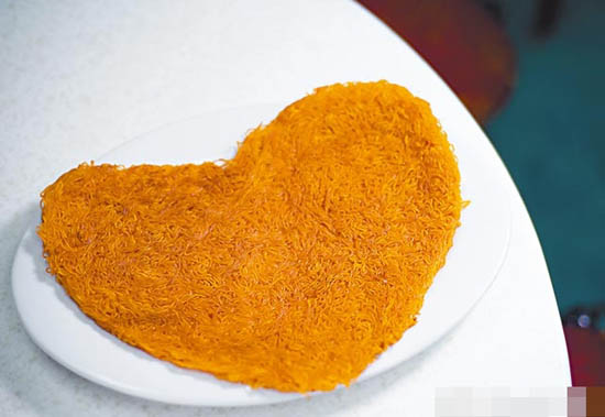 在这儿,还有两道必吃的招牌菜,“潮式心形糖醋面”好不浪漫。并且,因其两边面层煎到金黄薄脆,又有另一个贴切的名字--“两面黄”,除了脆卜卜非常香口之外,更可任意添加砂糖,再加一点镇江醋,半分酸半分甜、又香脆又软腍,“加蒜盐,然后煎到金黄色就可以翻转,跟着要不停手去搅动,这样才可以煎得均匀,如果不是未必做到金黄色泽。基本上,糖醋面是即叫即煮,十五分钟左右就可以煮好一个面。”