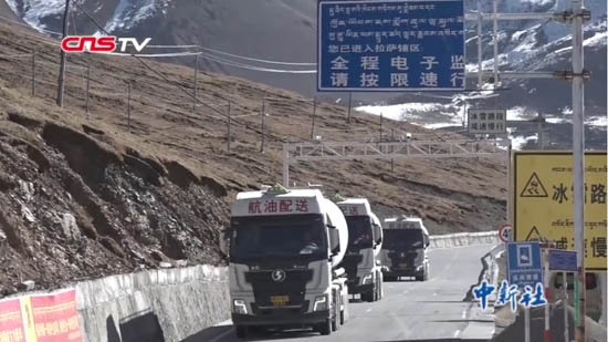 当日清晨,中国航油西藏公司驾驶员党福文驾驶满载航油的油车从拉萨市出发,通过国道318线前往林芝市米林机场。记者跟随航油车翻过海拔5100多米的米拉山口,此时山口的气温达到零下10摄氏度左右。