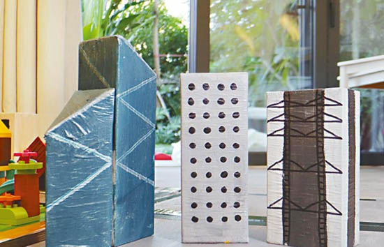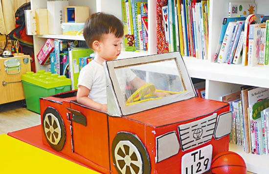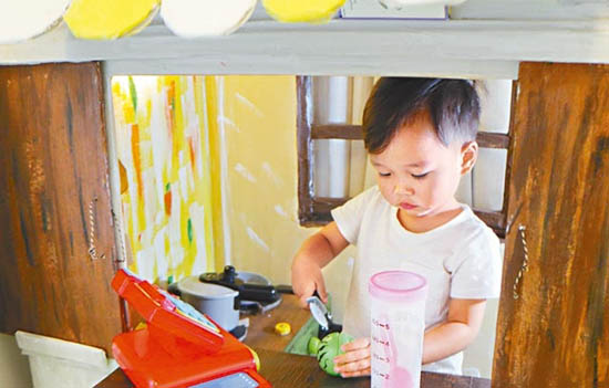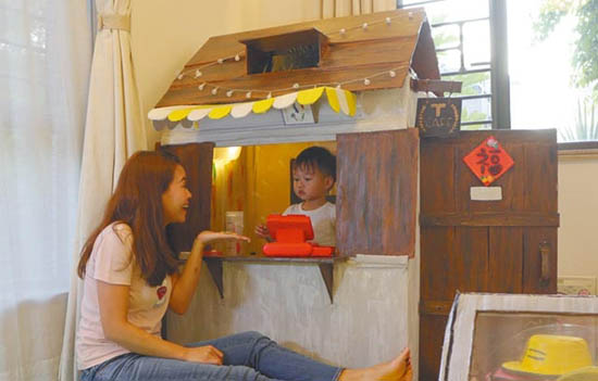 来到Natalie的家,有花园有草地,屋内陈设也很earth tone,制作玩具的材料也来自旧包装及纸皮,以为他们一家是环保分子,Natalie说:“环保这个原因占30%啦。”其余70%,则是为了和儿子更多交流,也为了制作更适合儿子的玩具,“之前都有买玩具,不过他好快玩厌。其实他想玩的东西可能就在身边,例如他对有人煮食好好奇,那我就整个小厨房给他玩。”旁边的Jason说:“其实过程都好开心,有多少机会一家人可以坐在一齐几个钟做同一样东西?就是开始自制玩具之后,我们经常都坐在一齐设计呀,之后又一齐动手做,变成一样好健康好有趣的家庭活动。”
