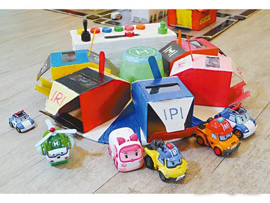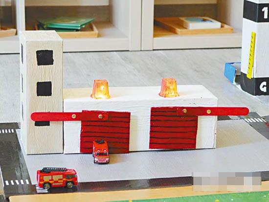 至于材料则以纸皮为主,还有不少是废物利用,如沐浴露的泵盖,“不过都有东西要买回来,例如用上色的塑胶彩,还有LED灯。”是!Natalie劲到为小城市里面的消防车总部加灯加开关,为什么会懂得?“有时会上网看外国的片学,再加心思改装。”如城市场景,她足足花了约30小时才完成。Jason有帮手吗?“可能有些细节位或上色我会帮手,好像斑马线,我们漏夜用涂改液画上去,画到我累死。”