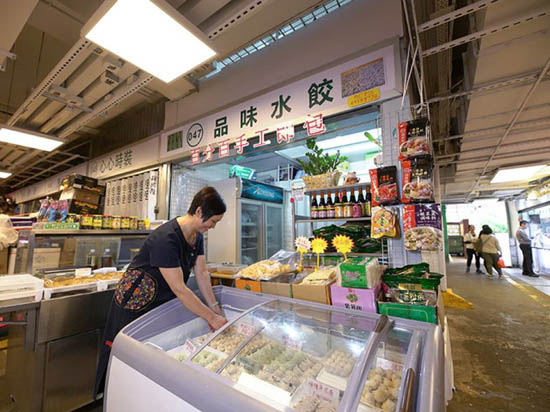 有近五十年历史的沥源邨街市,曾经风光,刚开幕时连英国查理斯王子亦曾到访参观,时移世易,老街市即使年初由领展翻新,似乎也没有变成新一代冷气街市那样花枝招展,难得依旧保留老旧社区的朴素,容下一些家庭式小本经营。像这家“品味水饺”,从附近的禾輋邨街市搬来,仅由客家妈妈李小姐一脚踢,每朝亲自买菜包云吞、水饺,新鲜家常,是附近不少主妇偷懒必备;偶尔推出的客家茶果,也是不少同邨婆婆午后零食,是街坊才知道的滋味。