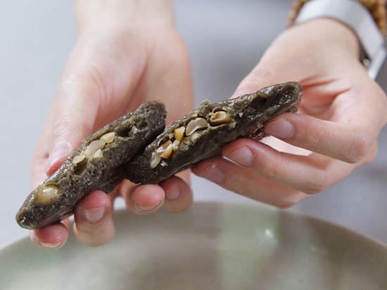 除了饺子,李小姐住屋邨,偶尔在山边看到鸡屎藤,又会摘来做茶果(7元港币)。“我是正式梅县客家人,在乡下七八岁就跟妈妈学做茶果了,以前小时候过时过节做很开心的,现在自己想吃,一星期做一、两次,才拿出来卖。”做茶果,工夫很多,鸡屎藤摘回来,水冲手搓,再过热水,干净软身才可用,切碎放进搅拌机打成滑身的叶汁,这时即有阵田野的清草香。接着,打起的叶汁,拿去捞糯米粉、粘米粉,手搓成皮。“要慢慢用力去手搓,不可以随便,搓得不够的话,吃起来不弹牙,不好吃。”馅料通常是花生,都是自家慢慢用镬烘炒,包在茶果中又香又脆,与带着青草香黑黑绿绿软糯的茶果皮,相映成趣。“这个吃完有益,清热解毒去湿,对皮肤好,都是乡下的味道。”