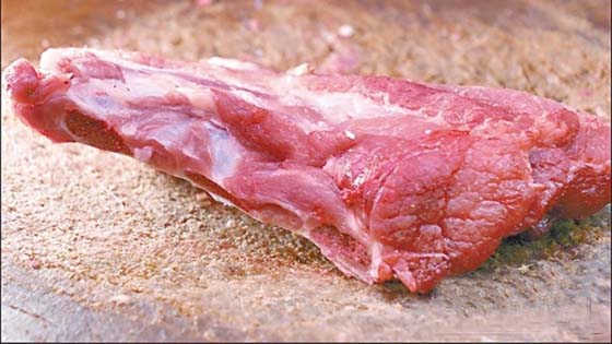 猪肉佬口才好、懂得讨好客人是基本,不过最重要的还是猪肉。“我卖的猪一定要是五丰行,有信誉保证。猪其实有好多种,便宜的多数是外省猪好像湖南、湖北,从较远地方运过来,猪身子都变弱,还有曾生产的猪婆、用来配种的猪公,有些人说有时吃到猪肉有臭味,就是这些猪。我卖的是广东猪,约百五、百六斤,价钱当然较高,但我主力做门市没所谓,最靓和最差价钱相差三分一。”他举起一块五花腩,一层一层,层次分明,油脂很少。“等于人的六块腹肌,一点油都没有,脂肪好像郭富城腹肌那样,这些猪肉就好靓啦。”那为甚么不卖本地猪?“本地猪没公磅,他们说这只猪多重就多重,有机会骗秤。”