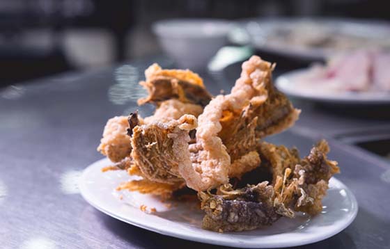 “以前吃没那么挑剔,现在要求高了,又海鲜又和牛。以前,吃品种类都没现在这么丰富,以前只有鲩鱼。”往昔火锅配料以内脏为主,但现代人追求健康,如猪粉肠、猪心椗、鱼肝等已买少见少,不过昌哥仍坚持有货就卖,“不是说新东西不好,但有时传统可能更好,做到这么久一定有原因的。”店内提供的火锅配料选择繁多,不乏独特之处,他如数家珍,选用新鲜鱼皮连骨的招牌自家制炸鱼皮,加少许粉,少许鱼露,恰如其分,否则味道过多像味精,一连炸两次才够脆;自家每日精心包制的新鲜云吞,馅有肥猪肉、虾,以麻油、胡椒调味,都是限量出品,所以很快沽清;还有,一些价廉味美的选择常被人忽略,那就是鱼鳔,用沙嗲汤底可去除腥味,可惜只是小量供应,每日只有数碟,因为与街市某间鱼档相熟,所以才预留给他。