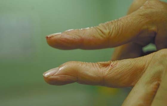“那时我收了一些泰国蛇,帮它剥牙,我用牙箝一箝,毒囊即时爆开,毒液射到眼,现在我的右眼只剩下五六成视力,意外就是这样,你想都想不到。”几年前,张成试过捉青竹蛇,被毒牙轻轻碰到手指,半分也没有,只是勾伤了,打了三支血清,仍然痛不欲生,康复到今天,手指依然不能伸直。