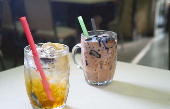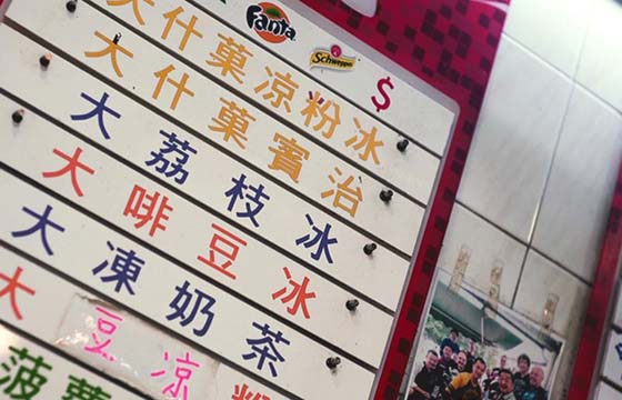 彩色,不单单呈现于七彩饭,店铺外观同样五光十色。墙上餐牌罗列多款饮料,大字颜色各异;水吧霓虹彩灯闪个不停,让人目眩神迷;甚至,每个水杯都有不同颜色,堆叠起来像是竖立向天的彩虹,日光晒在半透明的杯子上,于桌子投射了幻彩般的剪影,随着日光转移而缓缓挪动。影子,倒是自得其乐;人,却如钟上秒针不停绕圈子,忙不停。从事饮食行业,难得可以静下来的时候,便是退下来的日子,年纪老迈的老板梁恩现已退休,生意传承予儿子打理:“正式来讲,是由第五跟第七个儿子经营,我都老啦,就放手交给他们打理,第五个儿子中途帮手之后转型做餐厅。”