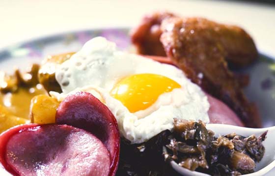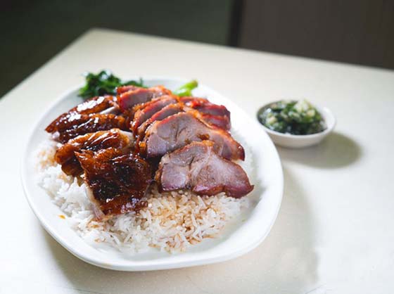 情寻处处,处处寻情,依傍于甲龙古道翠山青林之间,一道暖暖的霓虹搁在朴实无华的恩记茶餐厅,亦悬在街坊邻里的心头,那道霓虹便是其招牌菜式──七彩饭,共有七款菜肴放在白饭上,分别是鸡翼、鸡蛋、火腿、餐肉、红肠、特制梅菜猪肉、咖喱鸡,菜肴极之丰富,每一碗都是常满,望着,心中也觉得特别的畅快。顾名思义,老板梁恩以自己的名字命名茶餐厅,客人和夥计都称呼他“阿公”,他忆述:“以前,未转型做餐厅,已经有卖饭,款式好少,因为我和熟客关系都好好,就由得他们自己放菜色,菜色多自然颜色丰富,最后变了七彩饭。后来,愈看愈发觉颜色好似好缤纷,好吸引,就叫做七彩饭。菜还多过饭,差不多看不到饭。”一碟这么丰盛的饭菜,索价仅四十多元港币,好让平民百姓都有机会品尝这道彩虹,性喜平淡的梁恩不爱将事情弄得复杂,民以食为天,百姓只望吃得开怀饱肚,他自己亦乐见客人畅快大嚼。幸福,建筑在对方的快乐上,原来,生活的每分每秒可尽在笑声中轻轻地流过。