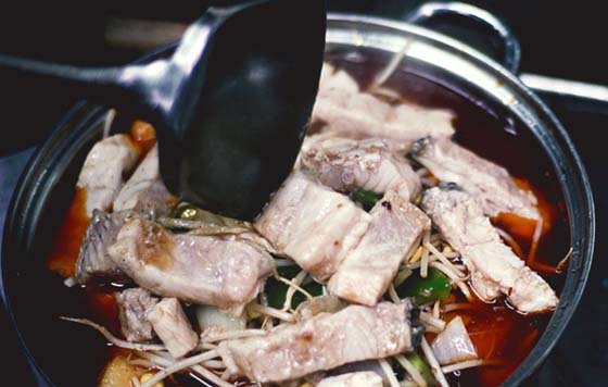 恩记的出品,口味比较浓郁,窝蛋免治火腩饭有别于一般的窝蛋免治牛肉饭,厨师特意加重味道,味浓,并用上新鲜脆皮火腩,以菜粒缓和热气感觉。此外,还有近年才推出的水煮鱼,全赖有一名员工在四川长大,因利乘便,材料都是从重庆运过来。制作水煮鱼可分为两个部份,骨腩先煮,鱼片先切薄片,因为不能煮太久,所以起菜后才下锅烚熟。特饮亦有特色,伟仪如数家珍:“例如咸桔蜜,是用过年桔晒干水分,用盐腌足三年。还有,凉粉是村民自家制的凉粉,是用真草,真材实料,不是用罐头。”