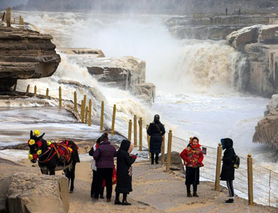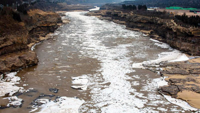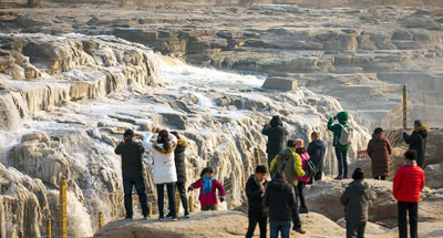 黄河秦晋峡谷大面积流凌 壶口瀑布两岸现冰挂景观 10 12, 2018 登载于 中国万象 12月9日,由于近日受寒潮影响,气温骤降,位于秦晋峡谷段黄河壶口出现大面积流凌,十里龙漕犹如一条白色巨龙缓缓游去,瀑布两岸受水雾影响结起了冰挂,吸引了众多游客及摄影爱好者拍照留念。 Last modified onMonday, 10 December 2018 14:13 更多相关: « 雪中黄山美景如画 景区多举措保障游客安全 首届中国空中舞蹈锦标赛在天津举行 »