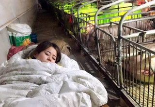 27岁美眉睡猪圈年收百万人民币 人工呼吸救400猪