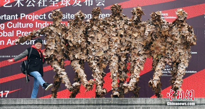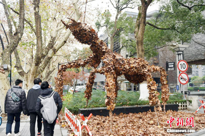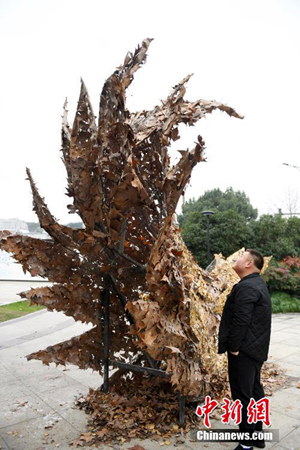 落叶艺术品成为杭州西湖独特风景 14 12, 2018 登载于 中国万象 图示:一位市民和小朋友在落叶装饰成的“三潭印月”前嬉戏。 近日,中国美术学院举办秋叶艺术节,众多以落叶设计的艺术作品亮相杭州西湖边,成为一道独特的风景。 图示:以落叶装扮的巨型“蚂蚁”吸引行人的关注。 图示:一位市民驻足欣赏落叶装置艺术作品。 图示:一位市民和人物形象落叶装置合影。 更多相关: « 猪年贺岁3元 10元纪念硬币来了 苍山负雪千岩一素 雪霁庐山成童话世界 »