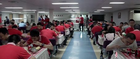 远望7号的冷冻库是全船最冷的地方,而全船最热的地方就要数后厨操作间了。由于船上禁止明火,后厨使用的都是电力加热。船上的食谱是根据库里食材的情况进行制定,每顿饭有五个菜:两个主菜,两个半荤菜和一个素菜,菜式一周七天不会重复。由于颠簸,在船上做菜还具有一定危险性。