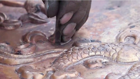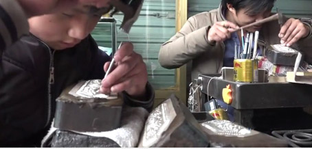 夜幕降临,当记者离开“银匠村”时,母树炖和他的白族同胞们,在渐渐被点亮的灯光下,小铁锤依旧锤打着錾子,在银器或铜皮上刻画出美丽的花纹,传来叮叮当当的响声……