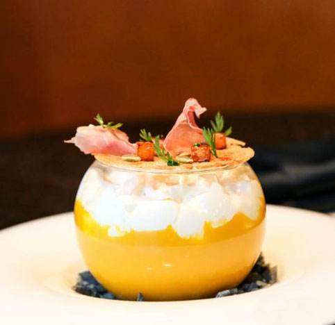 乌龙茶、鹌鹑蛋配牛油果?或是南瓜浓汤加芝士奶盖?吴亿杰用实际行动将这些灵光一现的“融合”点子,精美地展现在餐盘上。以西方烹饪技术融入亚洲味道,或用亚洲做法烹饪西餐,是他尝试“中西合璧”的“方法论”。