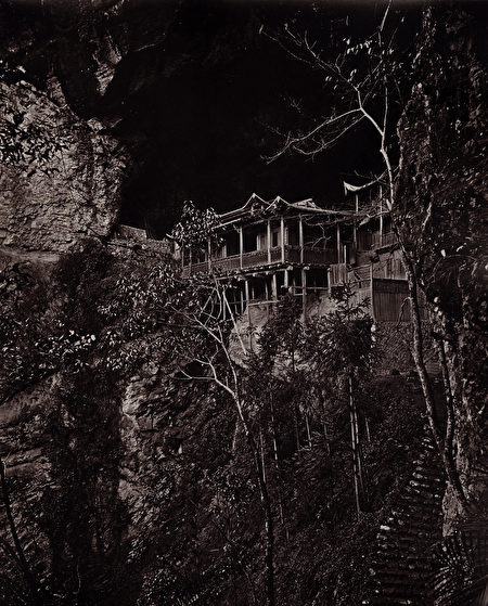 洛文希尔的藏品中,约翰汤姆森的《圆福岩寺》(Yuen-Fu Monastery Cave,音译)十分神秘,甚至令人毛骨悚然。寺院依山崖而建,背后是黑漆漆的天空。汤姆森以“影像新闻”风格著称,即毫不留情地捕捉生活的原生态。这张图像的细节非常锐利,显示了其敏锐度和高超技巧。