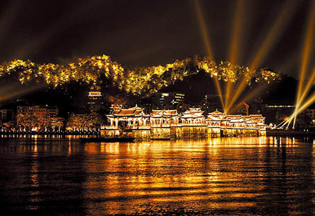 说到潮州,近来最火的莫过于横跨韩江的广济桥(俗称湘子桥)。除了贵为中国古代四大名桥,且拥有梁桥、拱桥及浮桥三种桥型设计,其中浮桥部分以木造船只并排串联,本身就是潮州经典名胜。2017年底当地政府还为其设置全新的7万组灯具,每晚的9点至9点16分,长达16分钟灯光秀演出,范围扩及6平方公里,从广济桥到笔架山、北阁佛灯等地都亮起斑斓灯彩。