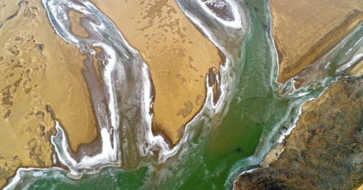航拍冬日黄河 如大地冰封血脉 08 01, 2019 登载于 中国万象 近日,山西运城,黄河河汊子被厚冰覆盖,水流缓慢致河水变清。从高空俯瞰,白色的冰和清澈的水蜿蜒在黄色河床上,如同大地血脉被冰封一般,壮观而美丽。 更多相关: « 唐代宝船的海上丝路系列① 乌伦古湖渔民2公里大网捕鱼 捕大鱼放小鱼 »