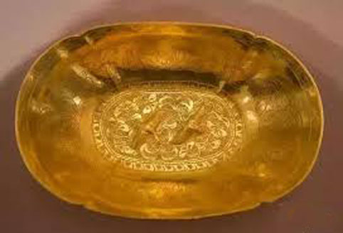 除了大部分价格较为低廉的瓷碗外,打捞上来的货物中还有30件金银器和18件银锭。这些产自中国南方的精雕细琢的金器备受宫廷的青睐,也是地方高官经常向皇室进贡的物品。西安城西的法门寺地宫藏有宫廷供奉的奢华金银器,其品质可与沉船中的文物相媲美。沉船中的中亚伎乐纹八棱金杯,是迄今所发现的最大的唐代金杯。为何一艘驶往爪哇和中东的货船会运载如此罕见珍贵的金器?它们是否是送给外国王宫的礼物?这些都成了沉入大海的谜语。