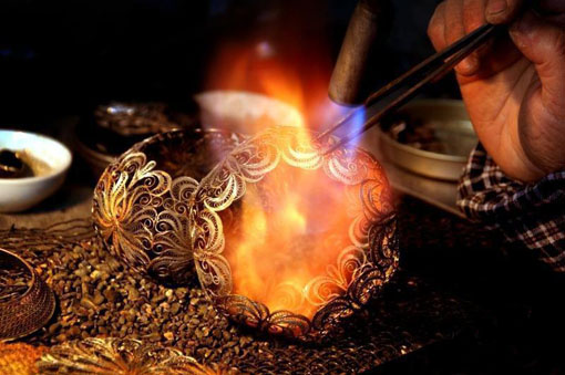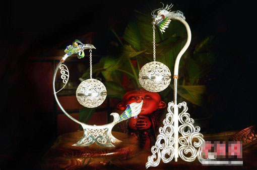国家级非遗成都银花丝 一米银筷拉丝千米不断 09 01, 2019 登载于 中国万象 成都银花丝始于宋代,迄今已有近2000年历史,并于2008年入选国家级非物质文化遗产名录。 银花丝制作工艺繁复,样式精美,主要包括设计、拉丝、搓丝、平填花丝、焊接等步骤。一根一米长的筷子粗细的银料可拉至1000米而不断,细度能与发丝相同。 工匠们根据设计图稿,将银丝搓至不同粗细,先制作出图形边框,再用不同的技法对中间的图纹进行填充和编织。整个过程均依赖手工,因此制作一副耳环都需要一周时间。 图示:拉成细丝的银料。 图示:工匠正在进行焊接。 图示:制作银花丝的工具。 图示:工匠正在根据设计图制作边框。 图示:精美的银花丝制品。 图示:精美的银花丝制品。 更多相关: « 唐代宝船的海上丝路系列⑥ 海南“早春茶”开采 国内外游客慕名前来品茗 »