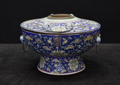 火锅在清宫中又称热锅,其质地有陶瓷、纯银、银镀金、铜、锡、铁数种。其基本形式有两种:一种为组合式,由锅、炉支架、炉圈、炉盘、酒精碗5部分组成,可以同时上桌烧煮食物,也可单独用锅温食品。另一种为锅中带炉,炉内烧炭火,能把水烧开,生鱼、生肉、蔬菜等放入沸水中可以煮熟。