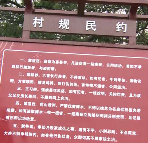 村里原来有族长,他定了个村规民约就是到樟树林里,砍一根竹子罚多少钱,放一次牛罚多少钱,现在老百姓意识都提高了,没有这种现象出现。