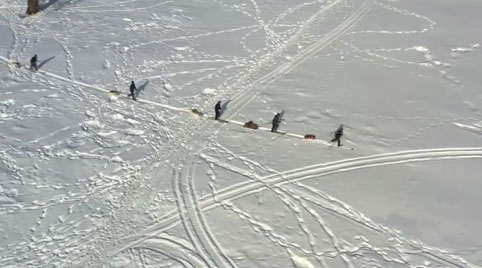 在穿越途中,他们平均每天需要滑行10小时,间歇休息不超过4次,每次休息不到5分钟。这9名队员中年龄最大的47岁,最小的26岁, 虽然他们从小就从父辈传承滑雪技艺,都是毛皮滑雪的能手,但他们中却没有人在冬天走过这条滑雪路线,因此此次穿越对他们来说仍是一个挑战。