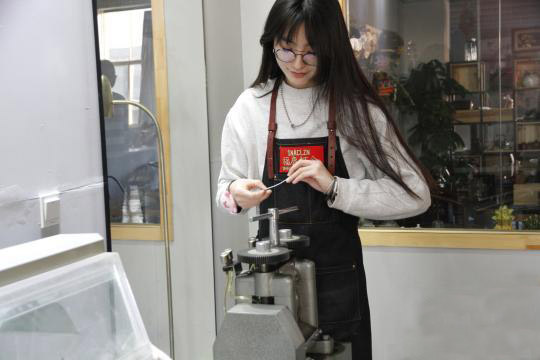 当天在工作室制作情侣吊坠的宋春蕾告诉记者,她从小酷爱手工制作,还曾去陶艺馆体验过手作陶杯。“手工制作不仅可以找回儿时的乐趣、表达自己的心意,还可以加深对中国传统手工艺的了解,增长知识。”