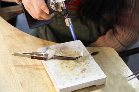 据刘彦鑫介绍,与普通首饰店不同,这家工作室是一家将金工锻造与银饰自主设计结合起来的体验式店铺,顾客可以在她的帮助下自主选择、设计、制作首饰。“我希望能让更多人参与到手工制作的乐趣中,将自身想表达的感情、纪念的事物寄托到自己的作品中。”