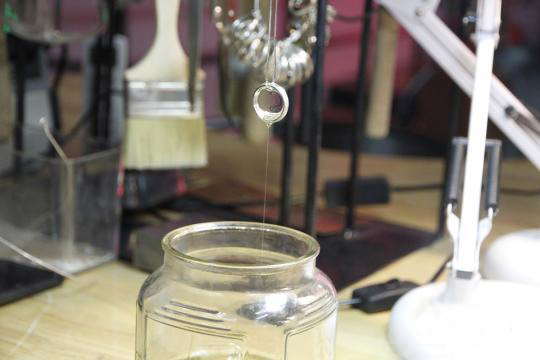 御濶正平、錾刻、打磨、焊接、正圆、抛光……一个小时左右,一根银条在刘彦鑫手中变成了一枚银光闪闪的戒指。刘彦鑫介绍说,做一枚戒指一般需经十几个流程,打金是一项精细的手艺活。