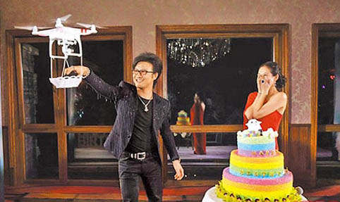 然而,大疆在中国的知名度,是直到2015年才全面爆发,当年歌手汪峰向女星章子怡求婚时,用Phantom 2 Vision Plus载著1颗9.15克拉的钻戒,从天而降到章子怡面前,让“大疆”名号一炮而红,也成为空拍机产业爆发的1年。