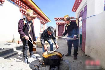 西藏林芝边境小康村迎藏历新年 25 01, 2019 登载于 中国万象 图示:西藏自治区林芝市朗县东部松木材村村民正在炸卡塞(卡塞是一种油炸面食,是藏历新年必备的年货之一)。 林芝市朗县松木材村位于西藏自治区林芝市朗县东部,距边境线45公里,平均海拔约4300米。 2017年林芝市朗县松木材村被确定为边境小康建设示范村,总投资1670万元人民币,用于29户民房以及相关设施的新建,目前建设已全部完工,当地村民于2018年8月前全部搬迁入住,2019年将是松木材村村民在新家度过的“首个”春节藏历新年。 图示:松木材村玩耍的孩童。 图示:村民正在装饰切玛盒(切玛是藏历新年必备的吉祥物)。 图示:松木材村村民正在炸卡塞。 图示:彩旗装点下的松木材村年味渐浓。 更多相关: « 青海湖进入冰封季 宛如“冰河时代” 猪年生肖纪念币登场 民众踊跃兑换 »