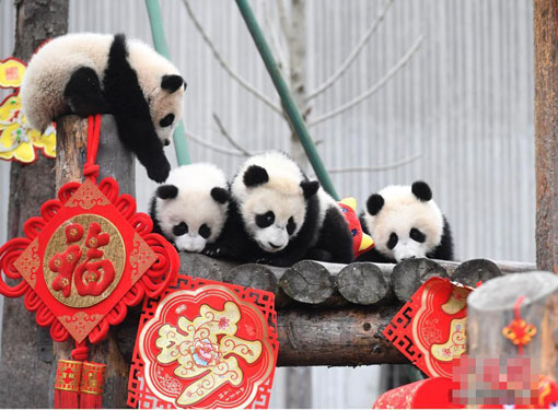 国宝拜年 新生大熊猫“天团”送出最萌猪年祝福 31 01, 2019 登载于 中国万象 31日,11只2018年新生大熊猫宝宝在中国大熊猫保护研究中心卧龙神树坪基地集体亮相,在辞旧迎新之际,为全球人民送上最“软萌”的猪年祝福。它们在工作人员布置的充满新春喜庆氛围的环境里东看看,西闻闻,憨态十足,萌翻全场。 更多相关: « 不婚不嫁、独身终老 “自梳女”背后有着怎样的故事? 春节临近 南京高速公路车流“看涨” »