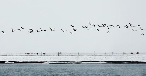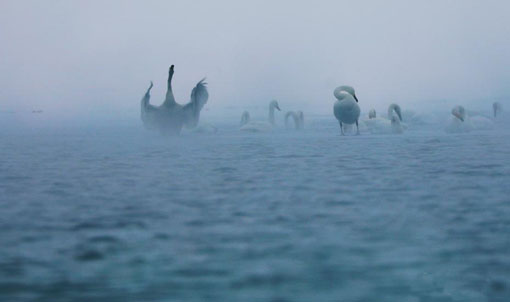 冰雪、飞禽勾勒中国内陆最大咸水湖青海湖冬日“水墨画” 01 02, 2019 登载于 中国万象 1月底,大批候鸟在中国内陆最大咸水湖青海湖嬉戏越冬,与高原湖泊同时勾勒成绝美“水墨画”。青海湖是世界生物多样性保护的重要场所,是中亚-印度候鸟迁徙路线上众多水鸟的重要繁殖栖息地和中途停歇地。其中,冬季以赤嘴潜鸭、针尾鸭、凤头潜鸭、赤颈鸭最多,而“大自然美丽精灵”大天鹅每年10月份开始从各繁殖地陆续迁来青海湖越冬,翌年4月初再向繁殖地迁徙。 更多相关: « 春节临近 南京高速公路车流“看涨” 皇家新年怎么过? 流行白春联 团圆饭“分拨”吃 »