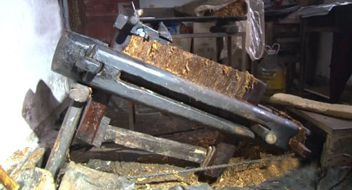 据聂小胖介绍,这些工具已经有很多年的历史了,做烟的榨还是从爷爷手上传下来的,推榨杆、夹板、烟框、铁锤等都是自己做的,都有一二十年了。