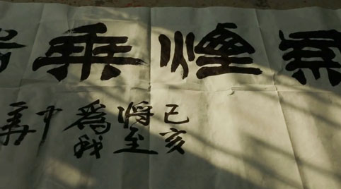 赵普说:“手别往上翘,腕是平的,看见没有,平的,这样。中国这个汉字是人类文化的太了不起的创作了,这种创作是全世界唯一的,它的内涵,它充满着的这种深深的哲理,人生的道理。我写隶书几十年,到今天这种水准,来之不易。我想把它传承下去。”