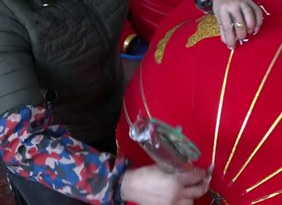 王刚表示,一个灯笼,它一般从骨架开始做,骨架做完以后,然后手工的穿丝,然后组装,最后大概有十道工序,然后成为一个灯笼。