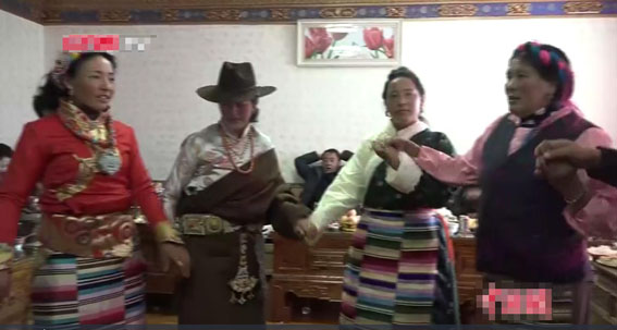 次旦群培说:“今年新年我们在拉萨的亲人、这里的亲戚朋友,庆祝我女儿新房的乔迁之喜,我们所有的亲朋好友相聚在这里庆祝迁新居,非常的喜庆、吉祥,无灾无病,非常的欢乐祥和。”